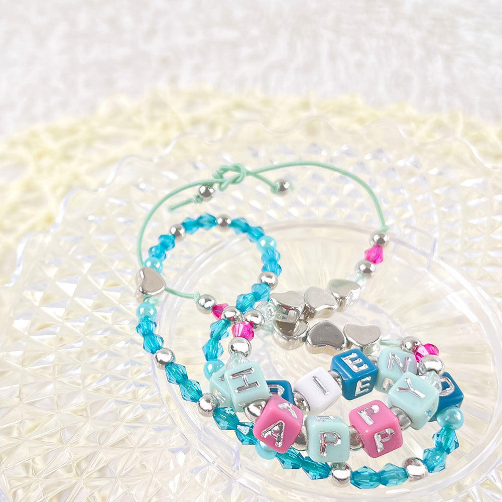 商品サイズ : アルファベットビーズ:0.5×0.5×0.5cm、ハート型ビーズ:0.7×0.5×0.3cm、ビーズ(小):φ0.3cm