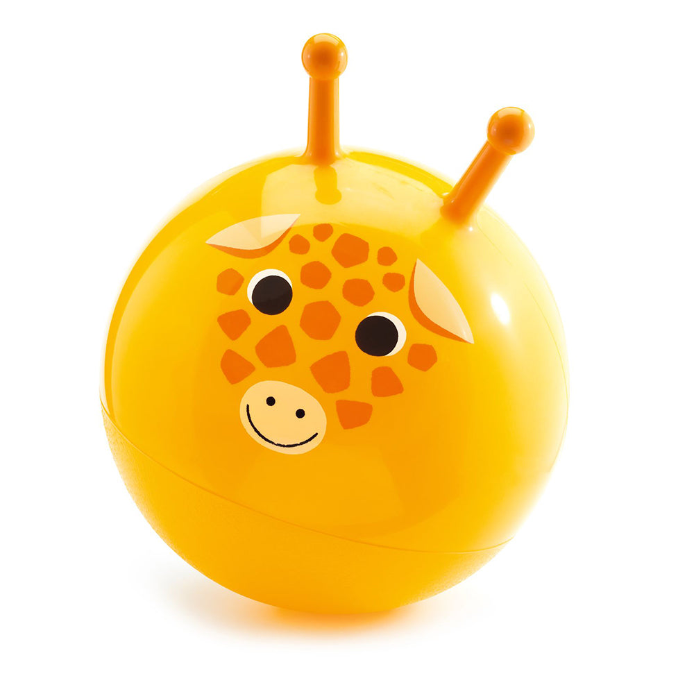 キリンが描かれたホッピングボールです。ツノにつかまってボールで跳ねてみましょう。