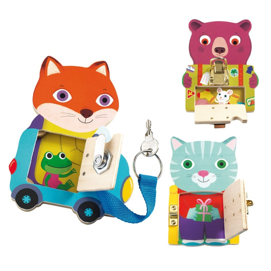 動物たちと鍵の開け閉めの練習ができるおもちゃです。
