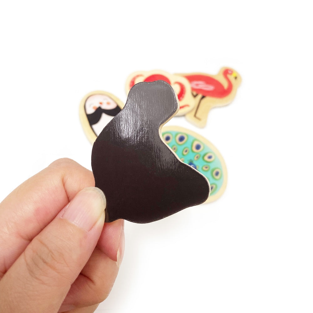 商品サイズ : テントウムシ:3.5×5cm、豚:5×6cm、ワニ:2.5×12.5cm、キリン:9×5.5cm、カバ:4.5×8cm、厚さ:0.5cm