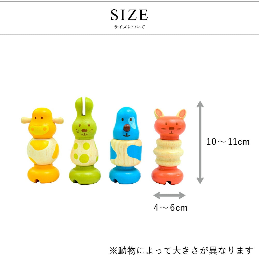 商品サイズ : 共通パーツ…ネジ:4.5×5cm、胴:3.5cm、頭パーツ…犬:5cm、豚:4.5cm、うさぎ:6cm、猫:5cm