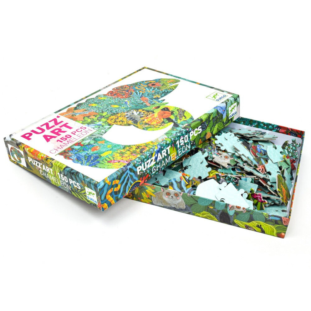 完成するとカメレオンのシルエットになるジグソーパズル。絵画のように色合いもシックでおしゃれなデザイン、子供から大人まで一緒に楽しめるパズルです。